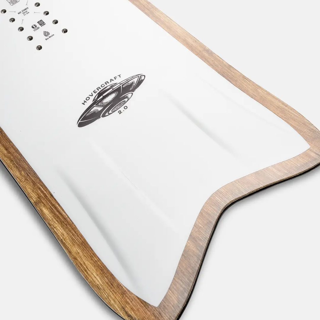 The Hovercraft 2.0 is an explosive alternative freeride board with a tapered directional shape that offers surprisingly diverse performance. With a floaty nose, camber underfoot and a long sidecut, the Hovercraft charges through pow, crust or corn, and rails on piste. The Hovercraft also features Re-Up Tech and is built with recycled materials from old snowboards.