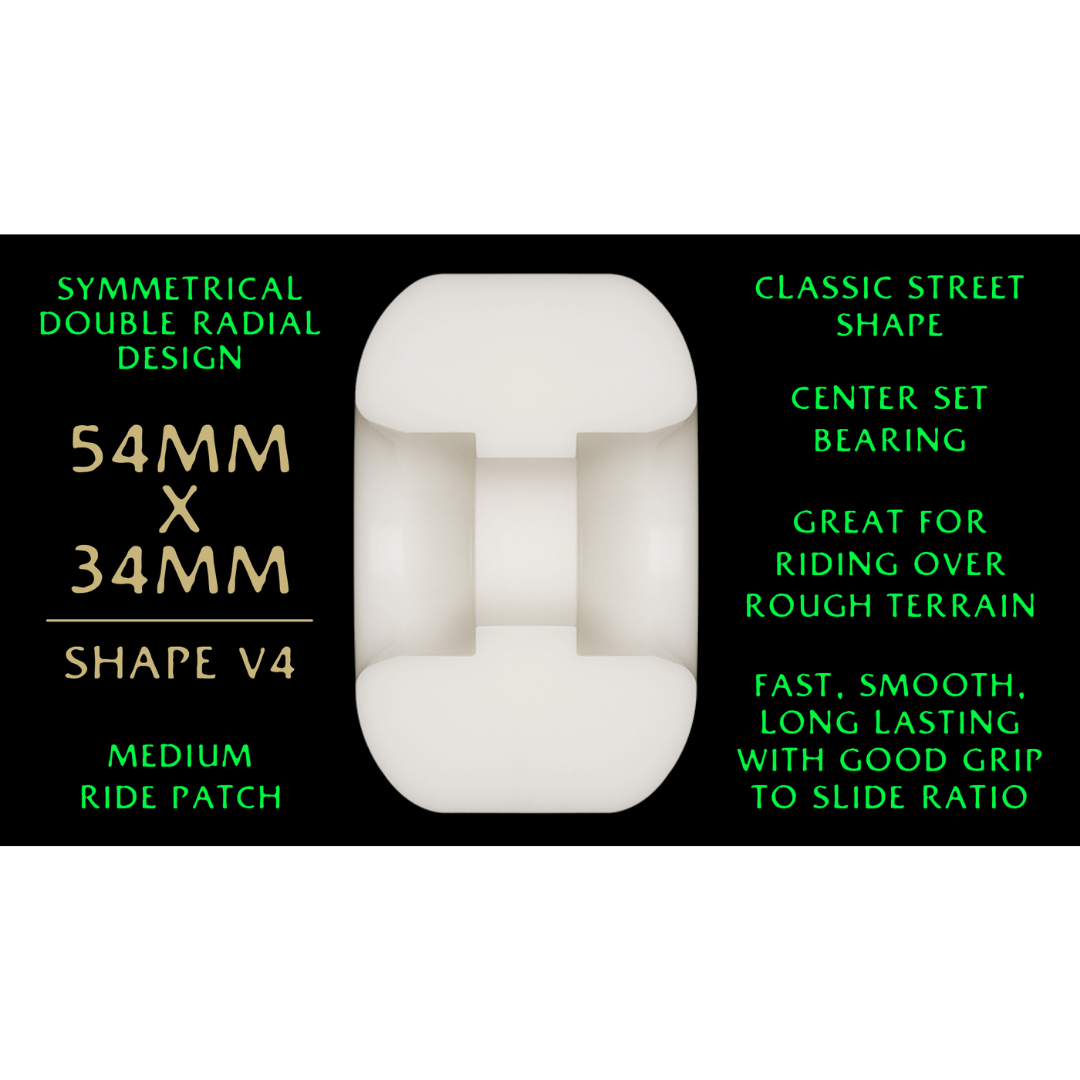 Dragon Formula has taken us a decade of development to perfect. they have amazing speed, a smooth ride, unequalled grip to slide ratio, vibration damping, and extra-long life. this formula is groundbreaking and will make skating more fun and expand the skate terrain available to dragon riders.
