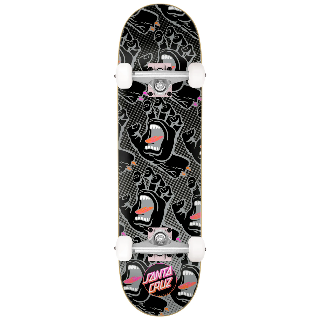 The Santa Cruz Gradient Hands XL Complete is 8.51” wide, 31.88” long and has a 14.25” wheelbase with Santa Cruz Gradient Hands artwork, high quality Krux 8.5 trucks and assorted high perfomance urethane wheels.